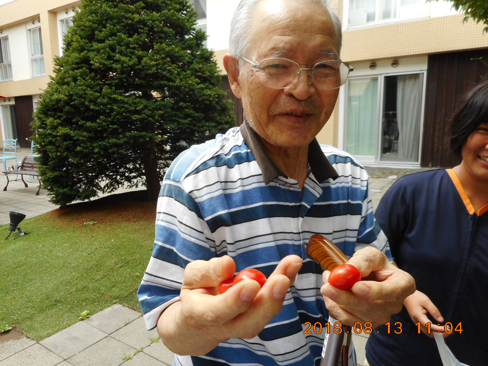 8月1日と13日に中庭に植えたトマトときゅうりを収穫しました。