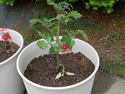 中庭にキュウリ、トマト、枝豆等の野菜の植付を行いました。