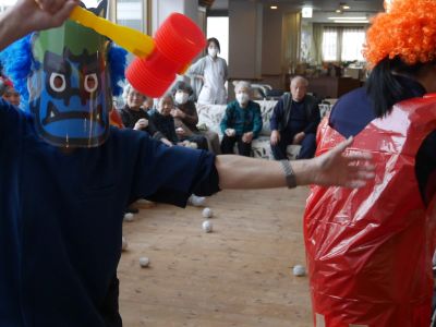 今日は、運動レクの後に節分「豆まき」を行い、邪を払い福を呼び込みました。
